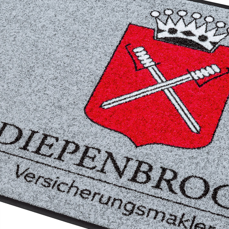 Eine Schmutzfangmatte mit eigenem Logo im Eingangsbereich Ihres Geschäfts muss besonders robust, widerstandsfähig und äusserst strapazierfähig sein. Schliesslich laufen Tag für Tag viele Besucher mit schmutzigen Strassenschuhen bei jedem Wetter über den Teppich. Besonders im Winter dient die Logomatte dabei als effektiver Schmutzfang. Dementsprechend sorgfältig waren wir bei der Wahl des Teppichmaterials, das wir Ihnen für die Erstellung einer Logomatte anbieten können. Entschieden haben wir uns für einen sehr robusten und strapzierfähigen Industrieteppich, der sehr haltbar und langlebig ist und sich zudem problemlos in der Maschine waschen lässt. Der Teppich aus hochwertigem Polyester mit Flor ist garantiert frei von PVC und hat einen Rücken aus rutschfestem Nitrilgummi. Auch nach längerem Gebrauch und Betreten durch zahlreiche Besucher und deren Schuhwerk bleibt eine von uns für Sie nach Ihren Vorlagen gefertigte Schmutzfangmatte mit eigenem Logo optisch ansprechend und einsatzbereit. Nutzen Sie die Möglichkeiten der Teppichwerbung mit einer individuell bedruckten Logomatte!