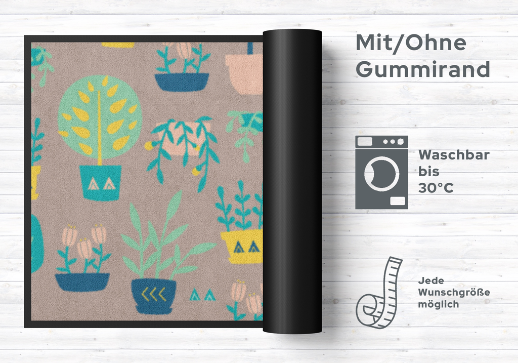 Mit dieser Fussmatte Pflanzen 4685 zaubern Sie nicht nur Ihren Besuchern ein Lächeln ins Gesicht. Diese sehr hochwertige Türmatte ist reissfest, knitterfrei, waschbar. Da sie mit 7 mm Gesamthöhe sehr flach ist, passt sie unter fast jede Tür. Die Fussmatte ist Schadstoffgeprüft und für Allergiker geeignet. Sie erhalten 5 Jahre Herstellergarantie.