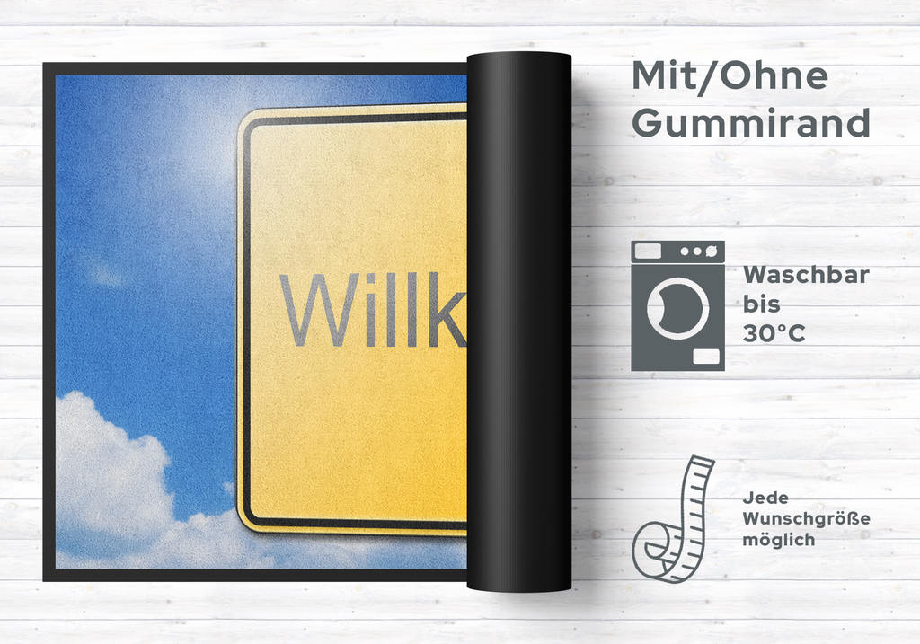 Mit dieser Fussmatte Willkommen 10049 zaubern Sie nicht nur Ihren Besuchern ein Lächeln ins Gesicht. Diese sehr hochwertige Türmatte ist reissfest, knitterfrei, waschbar. Da sie mit 7 mm Gesamthöhe sehr flach ist, passt sie unter fast jede Tür. Die Fussmatte ist Schadstoffgeprüft und für Allergiker geeignet. Sie erhalten 5 Jahre Herstellergarantie.