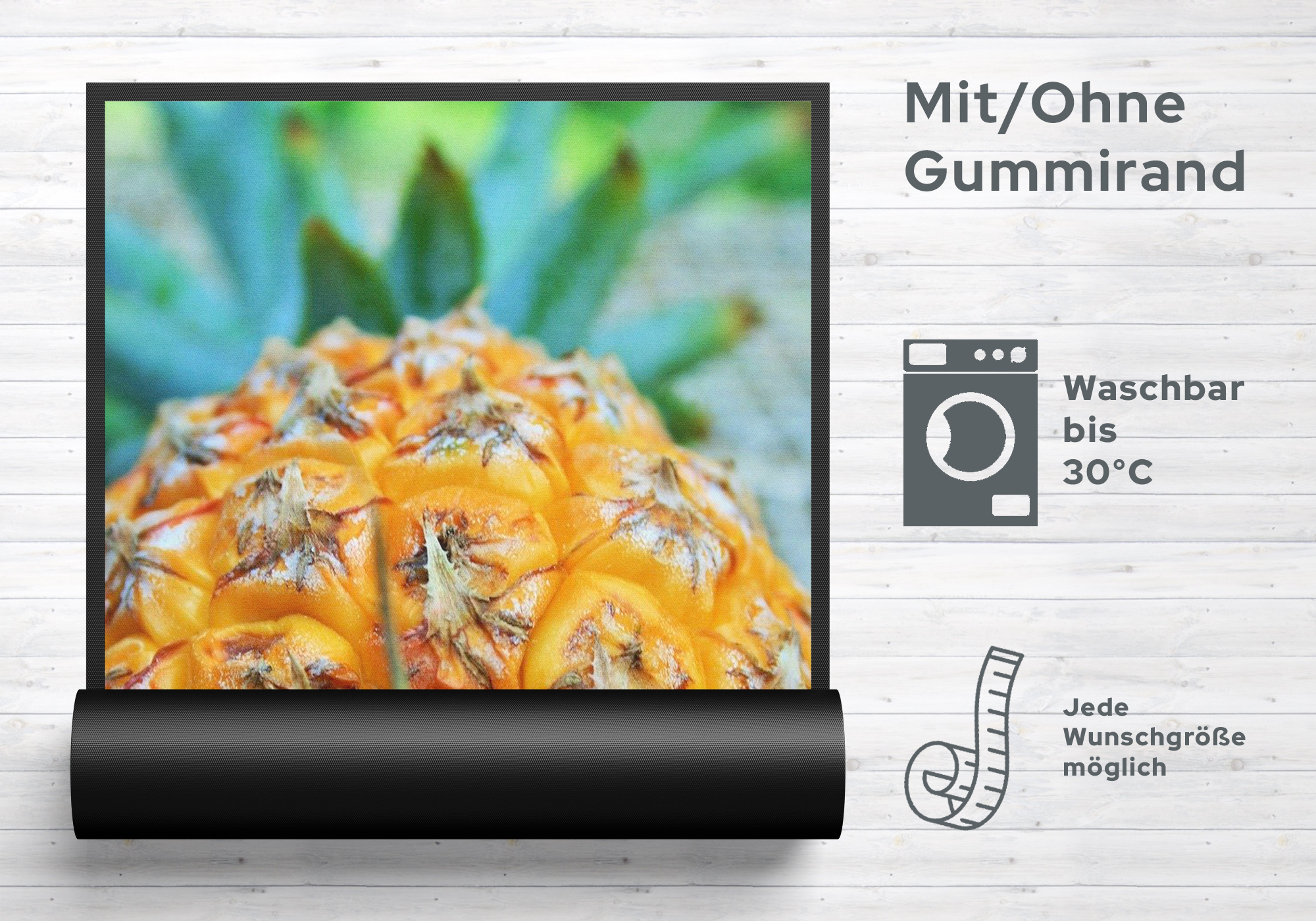 Diese sehr hochwertige Fussmatte Ananas 7591 ist reissfest, knitterfrei und waschbar. Gesamthöhe beträgt 7-8 mm. Diese Fussmatte ist Schadstoffgeprüft und für Allergiker geeignet. Pflegen Sie so Ihre Schmutzfangmatte regelmäßig und Sie werden überrascht sein, wie viele Jahre Qualität und Farbe erhalten bleiben.