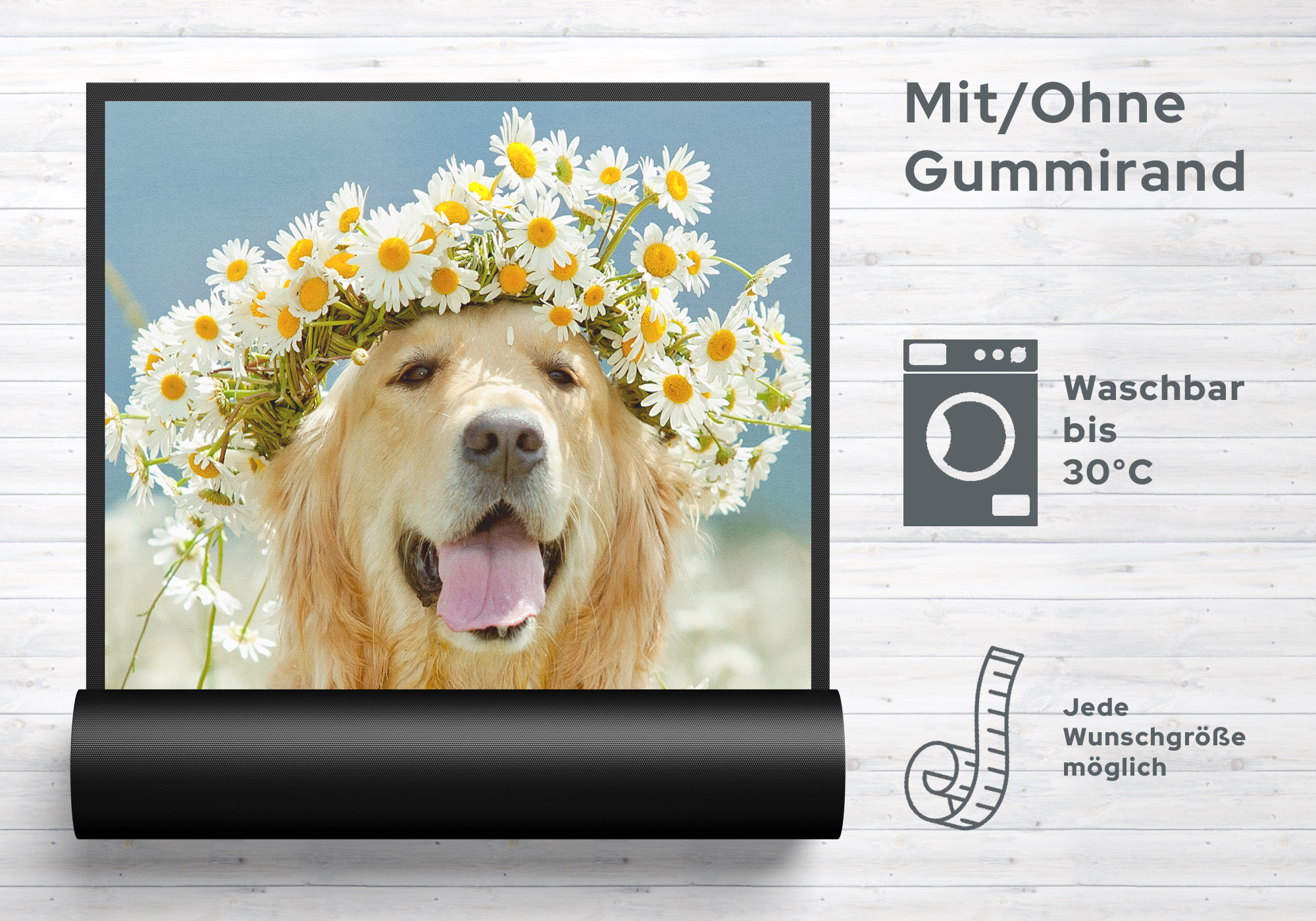 Auf Wunschmaß - auch mit Logo oder Namen.